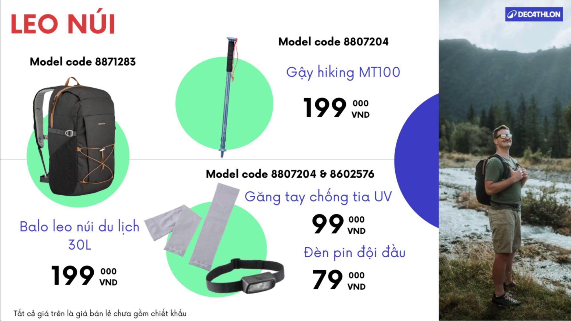 - Gậy hiking MT100 ~ 199.000 VND: Người bạn đồng hành bền bỉ cho những hành trình chinh phục đỉnh cao. Với thiết kế chắc chắn và dễ dàng điều chỉnh, sản phẩm là lời cổ vũ của doanh nghiệp gửi tới nhân viên và đối tác trên mọi hành trình vượt qua giới hạn bản thân.