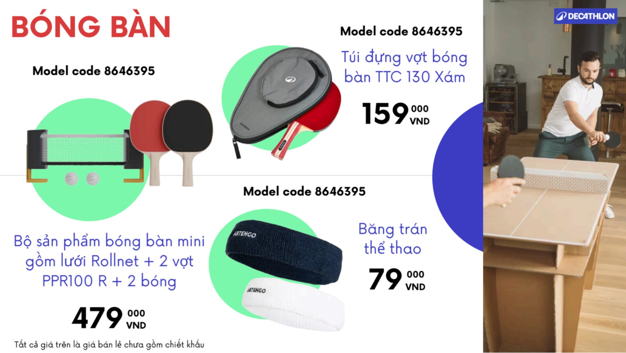 - Bộ vợt và bóng bàn trong nhà PPR 100 ~ 349.000 VND: Lựa chọn lý tưởng cho những buổi giao lưu giải trí ngay tại không gian văn phòng hoặc gia đình. Với thiết kế chú trọng vào độ kiểm soát bóng, bộ sản phẩm giúp người chơi dễ dàng làm quen và tận hưởng niềm vui thể thao. Đây là món quà tuyệt vời để thúc đẩy tinh thần đồng đội và tái tạo năng lượng cho nhân viên sau những giờ làm việc tập trung.