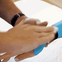 Xé giấy nền ở một đầu băng khoảng 3-4cm, dán phần này vào phần cổ tay ngoài, hoặc phía trên mu bàn tay. Đầu miếng băng nằm gần gốc các ngón tay, không kéo căng.