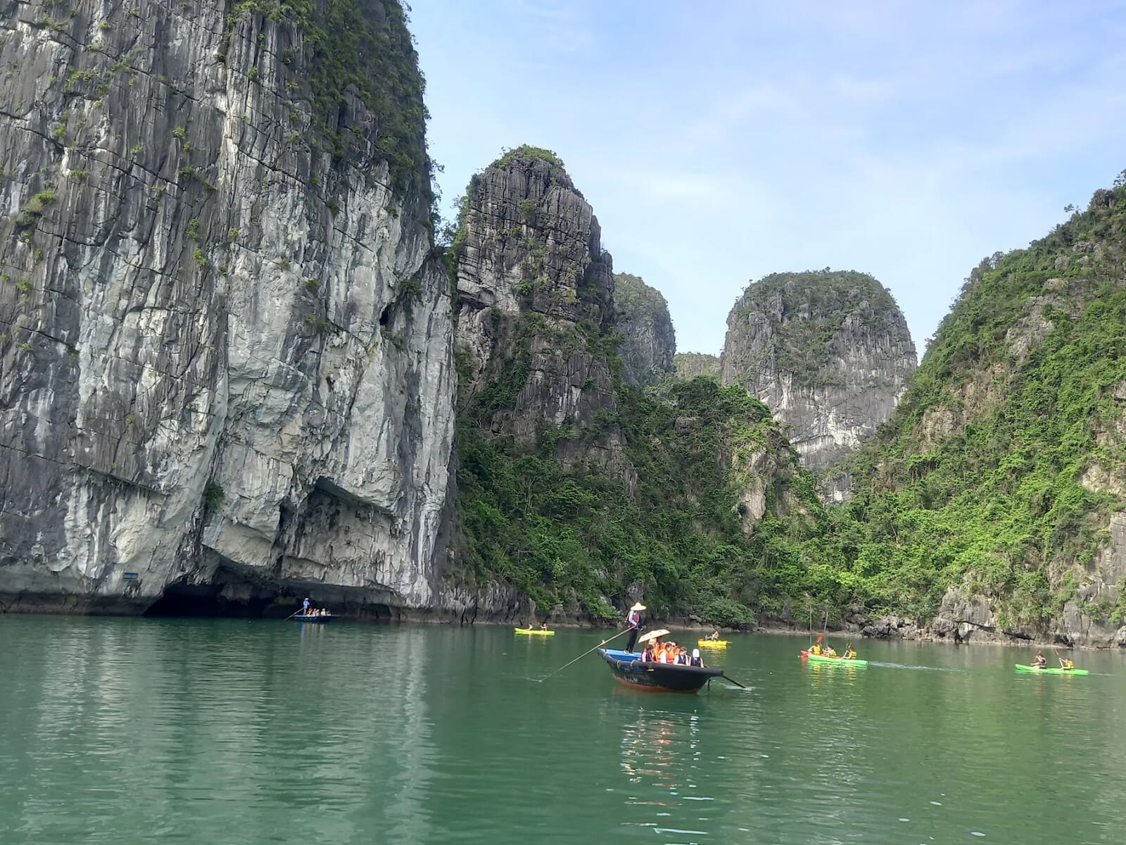 Hang Luồn: Một trong những địa điểm chèo Kayak nổi bật và dễ tiếp cận nhất tại vịnh Hạ Long. Nơi đây sở hữu một hang đá vôi thấp hình vòng cung độc đáo, dẫn vào hồ nước phẳng lặng, ẩn mình giữa núi non trùng điệp. Mực nước nông, ít sóng, cực kỳ phù hợp cho người mới bắt đầu trải nghiệm chèo Kayak.