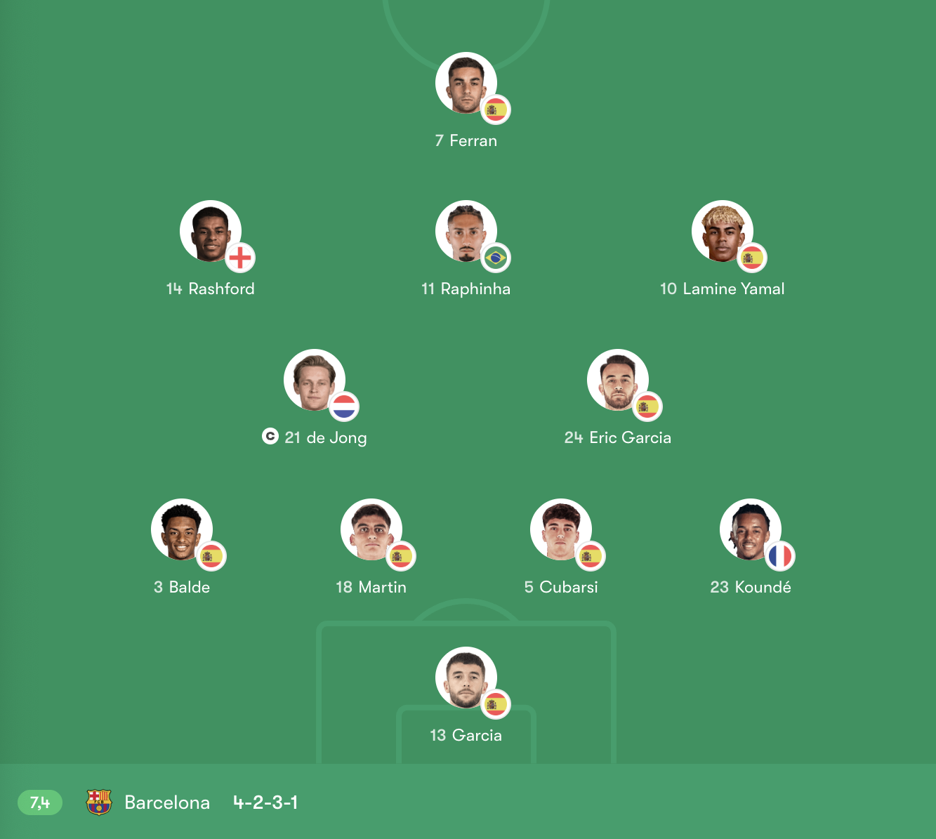 Hậu vệ: Balde (3) – Martin (18) – Cubarsí (5) – Koundé (23)
