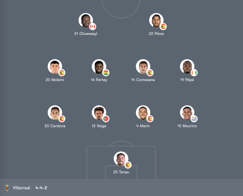 2. Đội hình ra sân chính thức của Villarreal