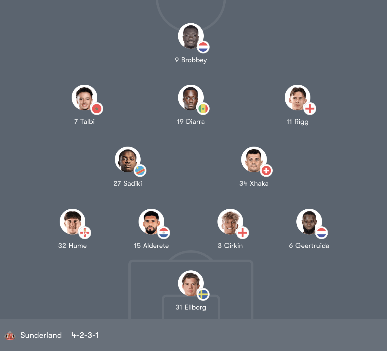 Ở tuyến giữa, Xhaka mang lại kinh nghiệm và khả năng điều tiết, trong khi Sadiki đảm nhiệm vai trò thu hồi bóng. Hàng công với Talbi, Diarra và Rigg hoạt động phía sau Brobbey – tiền đạo có thể hình và khả năng làm tường tốt.